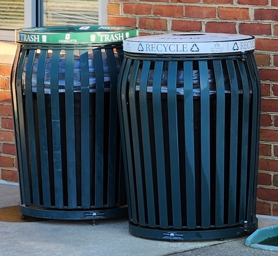 There are 200 outdoor recycling stations across campus. Outdoor recycling stations collect two types of materials: Cans & Bottles and Trash. Due to rain, paper cannot be collected at these stations.